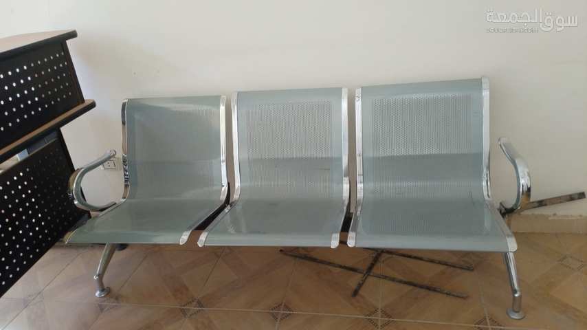 - مكتب استقبال فاخر خشبي لون بني مع واجهة أسود مثقب، شكله عصري جدًا ومناسب لعيادات – مكاتب – صالونات – شركات المقاس تقريبًا 25 متر طول × 12 متر عمق حا...