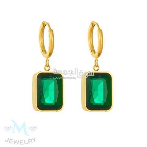 حلق استنالس بيور فص اخضر ميغيرش لون