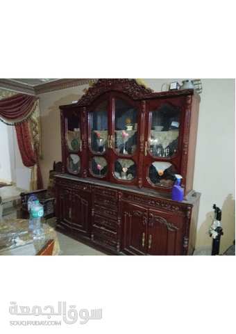 سفرة مربعة إستعمال نظيف بحالة ممتازة خشب زان بالزجاج عبارة عن ٨ كراسي مع بوفيه بالزجاج والمراية لكن في الصورة شايلين الزجاج والمراية ومتغلف جانبا Bela...