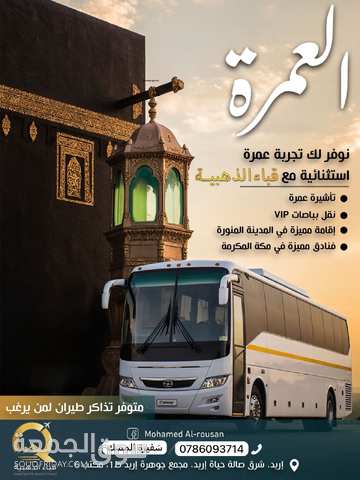 عروض العمرة للمعلمين والمعلمات عروض شهر 9 - شهر 10 لزيارة بيت الله الحرام مكه المكرمه مع شركة قباء الذهبيه العرض الأول : رحلة عمرة طيران 450 دينار شامل تاشيرة عمرة تذكرة طيران ذهاب اياب اقامة فندقية 3 ليالي فندق انجم مكة يبعد عن ساحة الحرم 150 م العرض الثاني : رحلة عمرة طيران 390 دينار شامل تاشيرة عمرة تذكرة طيران ذهاب اياب اقامة فندقية 3 ليالي فندق البستان الماسي مكة المكرمة يبعد عن ساحة الحر...