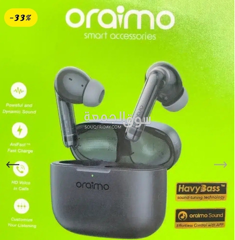 Oraimo FreePods Lite – حرية الصوت بين يديك استمتع بصوت نقي وقوي مع سماعة Oraimo FreePods Lite المصممة لتناسب أسلوب حياتك النشط بتقنية Bluetooth 53 لاتصال أسرع وثابت، وبطارية تدوم حتى 30 ساعة من الاستخدام المستمر تصميمها الخفيف والمريح يضمن ثبات مثالي داخل الأذن، ومع تقنية ENC لعزل الضوضاء هتسمع وتتكلم بوضوح في أي مكان مقاومة للعرق والمياه بمعيار IPX4، علشان تكمّل يومك بدون قلق تحكم باللمس الذكي لتشغيل الأغاني، الرد...