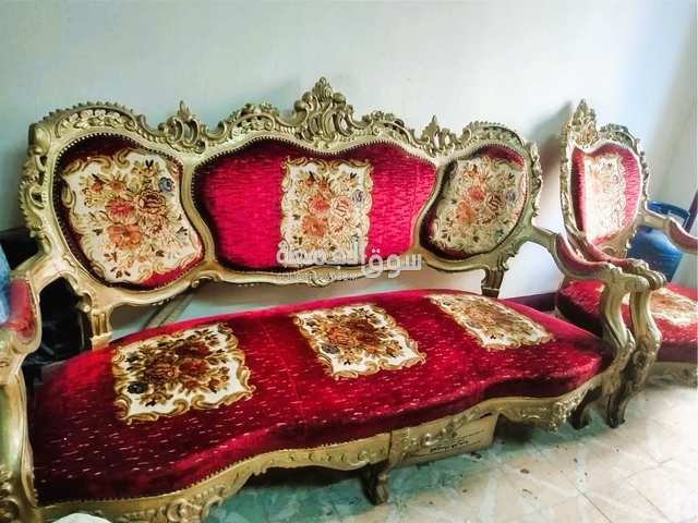 صالون مدهب خشب زان انتيك كنبة واربع كراسي حالة ممتازة بدون اي عيوب او كسور - العنوان عين شمس الشرقية القاهرة الكنبة والكراسي بحالة ممتازة جداً، خالية تماماً من أي عيوب أو خدوش ظاهرة، مما يعني أنها جاهزة للاستخدام الفوري دون الحاجة لأي صيانة أو تجديد
