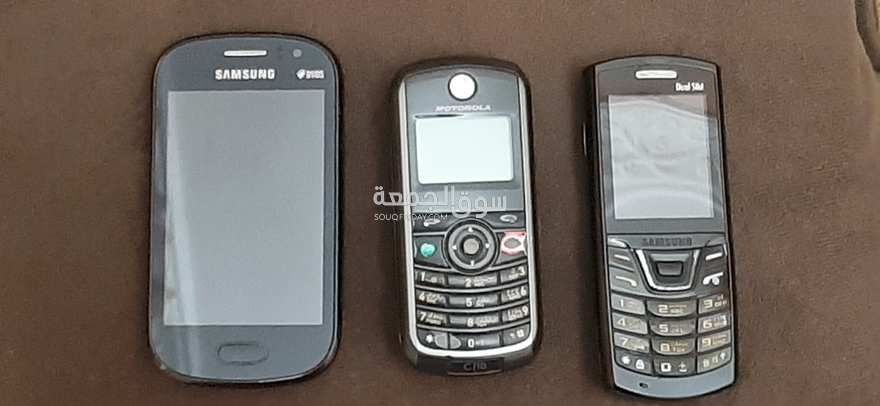 للبيع مجموعة 3 أجهزة قديمة: سامسونج DUOS شاشة لمس موتورولا كلاسيك بكيبورد سامسونج Dual SIM بكيبورد الأجهزة بدون بطارية أو شاحن، وكانت مخزنة لفترة طويلة