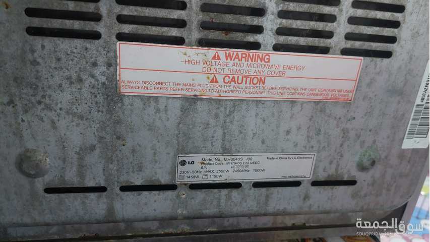 للبيع ميكروويف LG موديل MH8040S – جديد تمامًا ومش مستخدم، كان مركون في الكرتونة ومفهوش أي خدوش أو عيوب، فقط الكرتونة الأصلية مش موجودة
